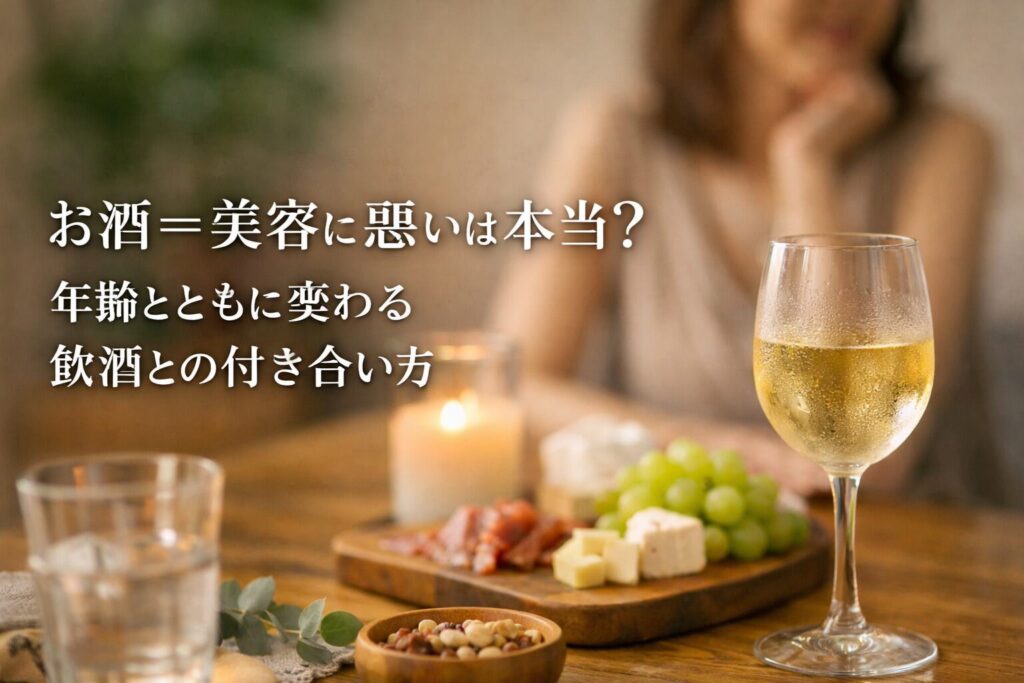 【年齢を重ねて気づく、肌とお酒の微妙な関係】 「最近、前と同じケアをしているのに肌が整わない気がするの」「お酒は好きだけど、これって美容に関係あるのかなぁ?」 ある日、同世代の友人A子から、こんなふうに相談されました。仕事や家事がひと段落し... -