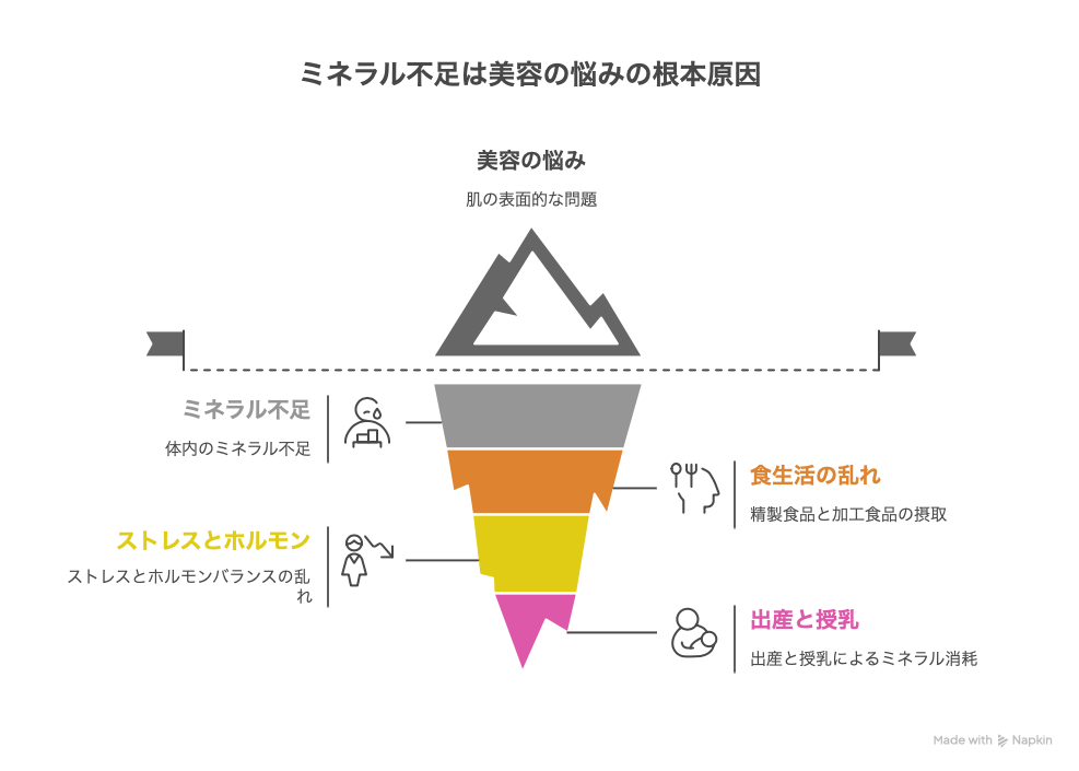 つまり、ミネラルを整えると 美容・体調・メンタルのすべてが改善しやすくなる のです。