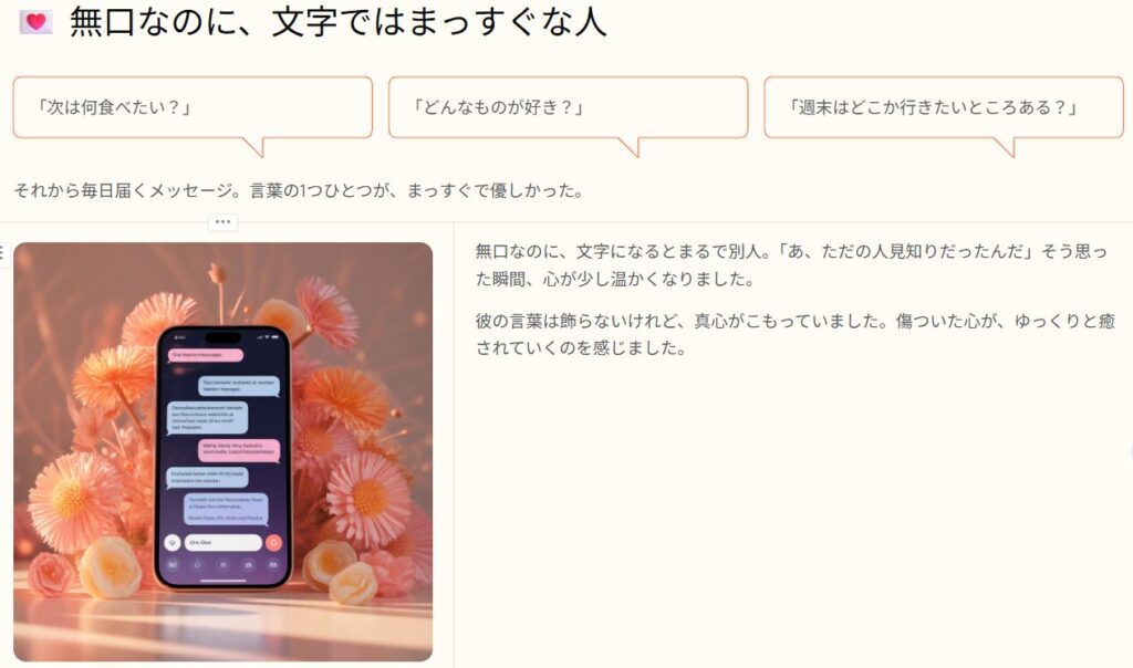 💌 無口で人見知り、でもとてもまっすぐな人